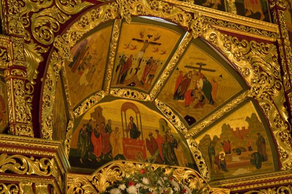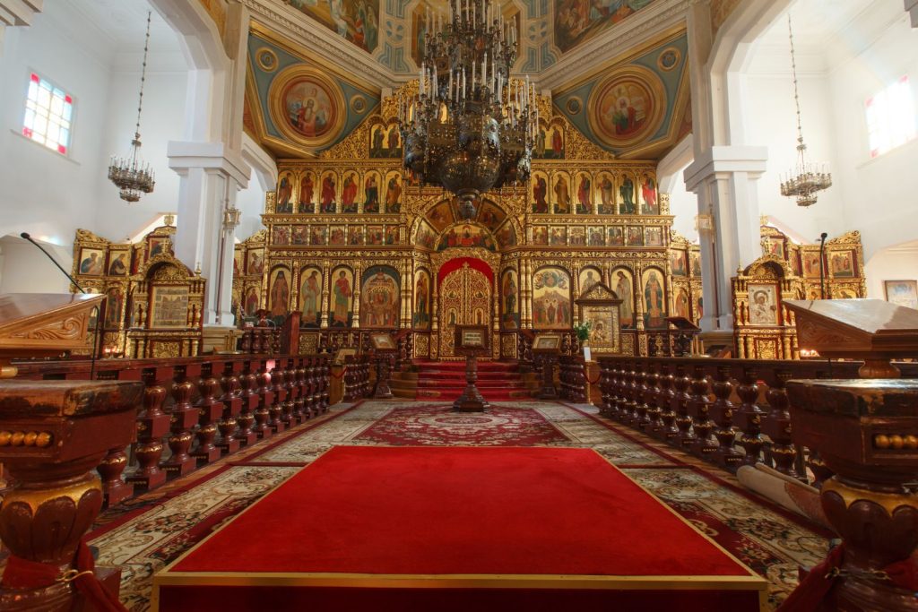 Memasuki bagian dalam Ascension Cathedral, pengunjung akan disambut suasana sakral dan tenang. Interiornya dihiasi ikon-ikon religius bergaya Ortodoks dengan warna emas dan lukisan detail yang memancarkan nuansa spiritual mendalam.