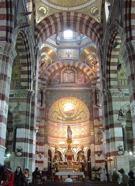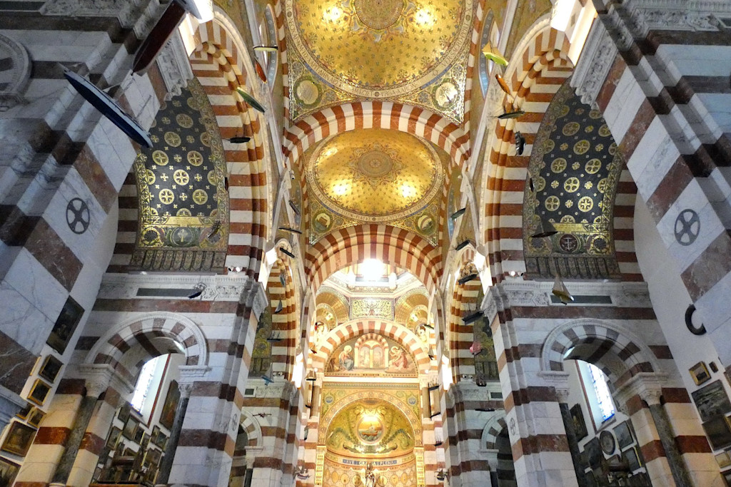 Basilique Notre-Dame de la Garde dikenal karena desainnya yang luar biasa dan penuh simbolisme.